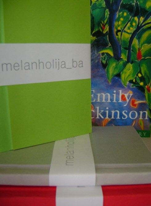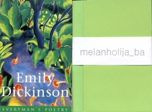Prva je knjiga izbor iz poezije Emily Dickinson na engleskom jeziku. (Ne znam kad će izaći moj prijevod u 15 dana, mislim da neće tako skoro. Kad bude – javim.) Napomena za vizualno neuke: notesi su znatno manji od naslovnica uz koje stoje.