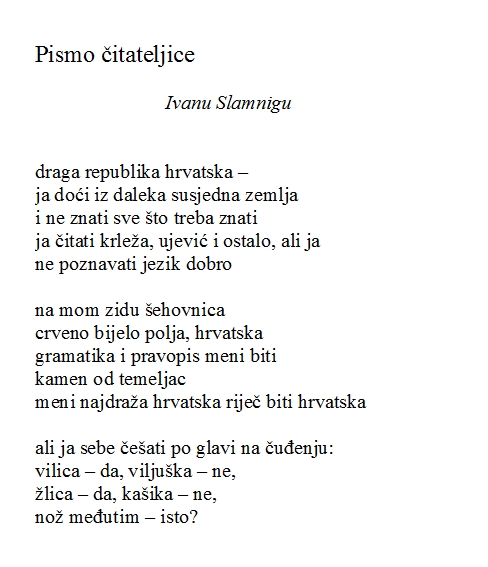 Čitala sam je u Rijeci, u Karlovcu, sutra ću u Novom Sadu, a evo je i na netu. Slobodno je šerajte, samo me potpišite kao autoricu. Btw. Ovo “vi” iz naslova posta uzmite s rezervom. Samo je jedna osoba tražila da pjesmu podijelim, ali množina izgleda respektabilnije.