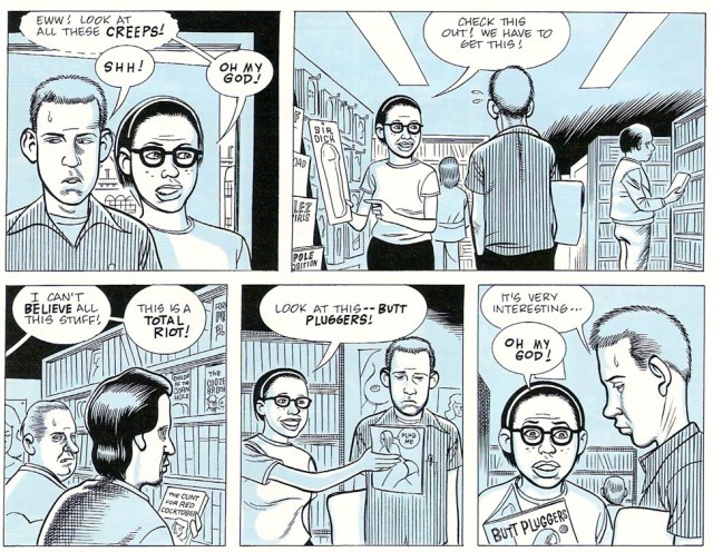 Stripove Daniela Clowesa najviše volim zbog njihovog zanimljivog seksualnog podteksta. David Boring (2000) i Like a Velvet Glove Cast in Iron (1993) priče su koje se razvijaju oko seksualnih opsesija i fetiša glavnog lika. No iako je u većini Clowesovih stripova protagonist – muškarac, riječ je zapravo o antijunaku, čovjeku iz kojeg su iscijeđeni testosteroni, muškarcu koji je „slab“, „ružan“, „nezamjetljiv“, tipu čija je jedina motivacija pronaći ženu kojom je opsjednut, a koja je također daleko od savršenstva, iako je glavni lik doživljava kao idealnu. Takva je karakterizacija likova u skladu s tradicijom alternativnog stripa, ali je dijametralno suprotna načinu na koji se muški identitet gradi u mainstream djelima koja preferiraju savršeno tijelo i nepokolebljiv duh.